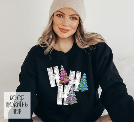 Faux Sequins Ho Ho Ho Trees Clear Film COLOR